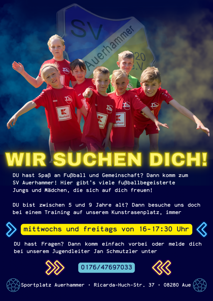 Du liebst Fußball, willst dich austoben und neue Freunde finden? Dann bist du beim SV Auerhammer genau richtig! Egal, ob du 5 oder 16 Jahre alt bist – wir haben für jedes Alter die passende Mannschaft.